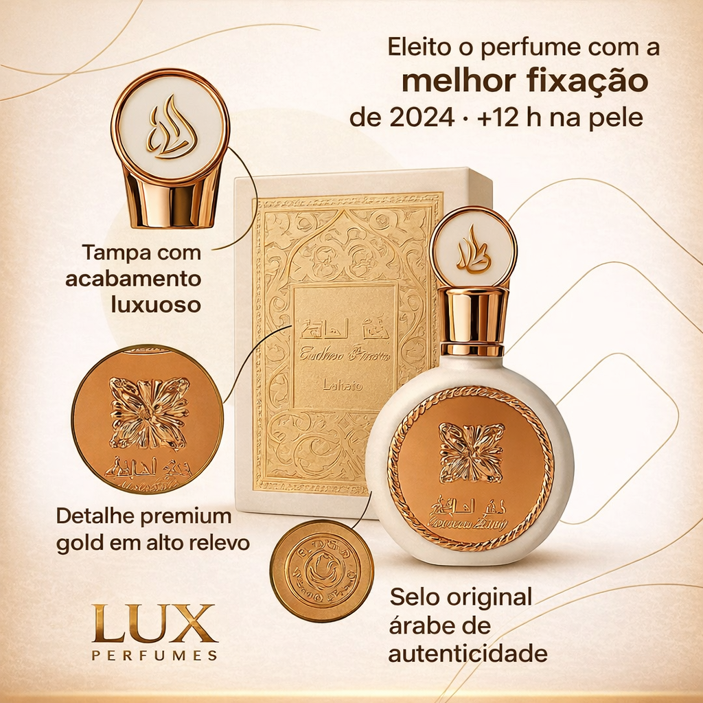 Luxo quente e irresistível · Âmbar intenso · Acorde oriental sofisticado · Alta fixação