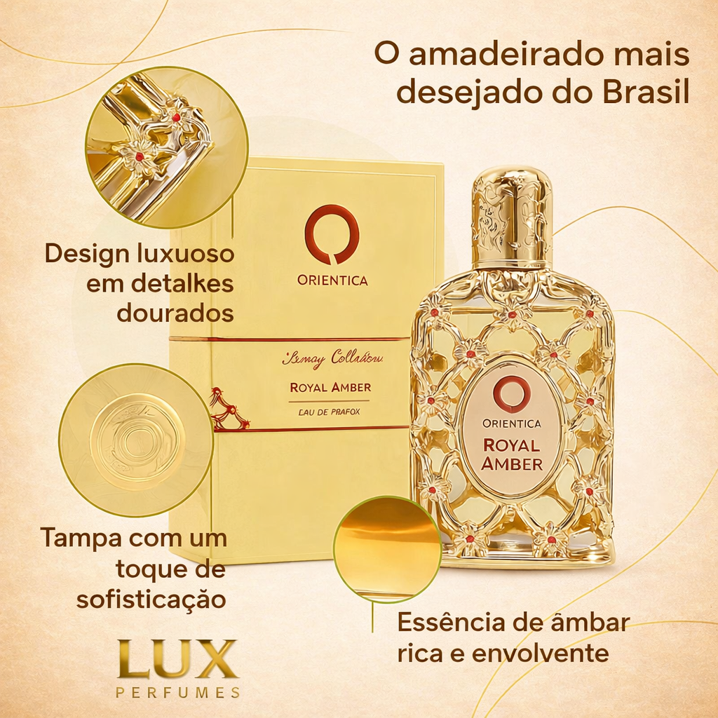 Luxo quente e irresistível · Âmbar intenso · Acorde oriental sofisticado · Alta fixação